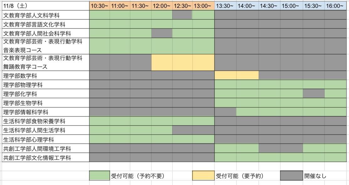 11/8 12:00〜12:30, 14:00〜14:30, 16:00〜16:30